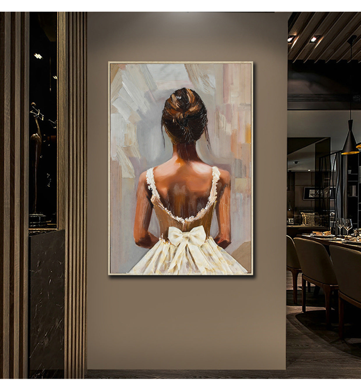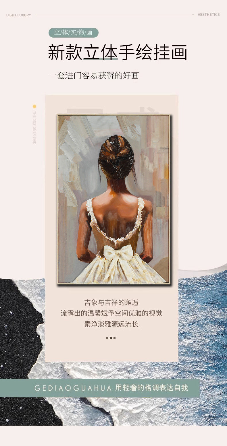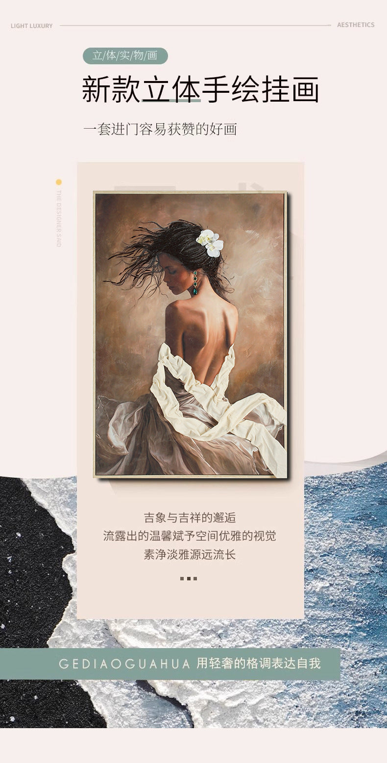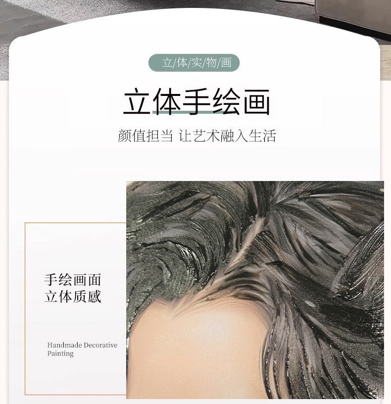 Hand-painted figure texture oil painting with three-dimensional and rich textured brushstrokes. High-end and sophisticated, it is perfectly suitable for commercial scenarios. Custom-made for hotel and guesthouse backdrop walls, it serves as a physical installation art mural to enhance space style and artistic atmosphere, highlighting quality and texture.