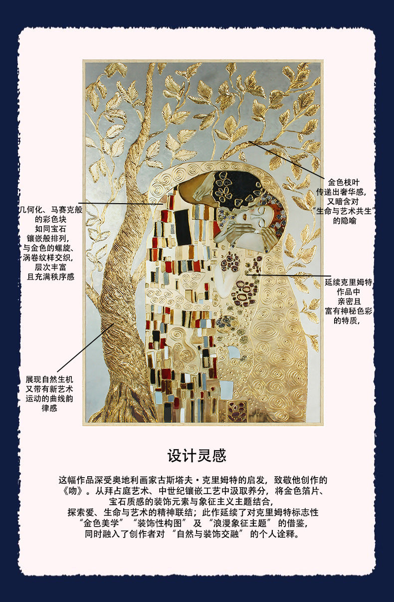 Original design "The Kiss" decorative artwork, featuring 3D gold-embossed texture for a luxurious touch. Export-grade quality, tailored for European and American markets. Perfect for entrance halls, hotels as hanging panels or murals, elevating spaces with elegant abstract charm.